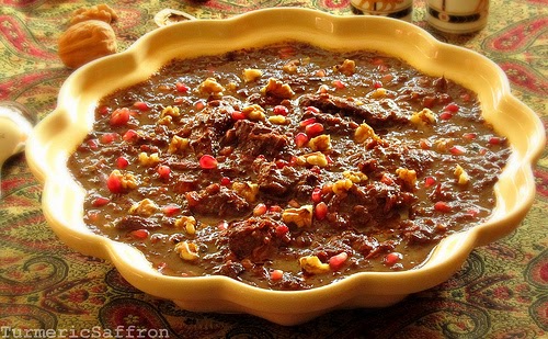 Fesenjoon The iconic Persian stew of ground walnuts, pomegranate molasses, and chicken turmericsaffron.blogspot.com