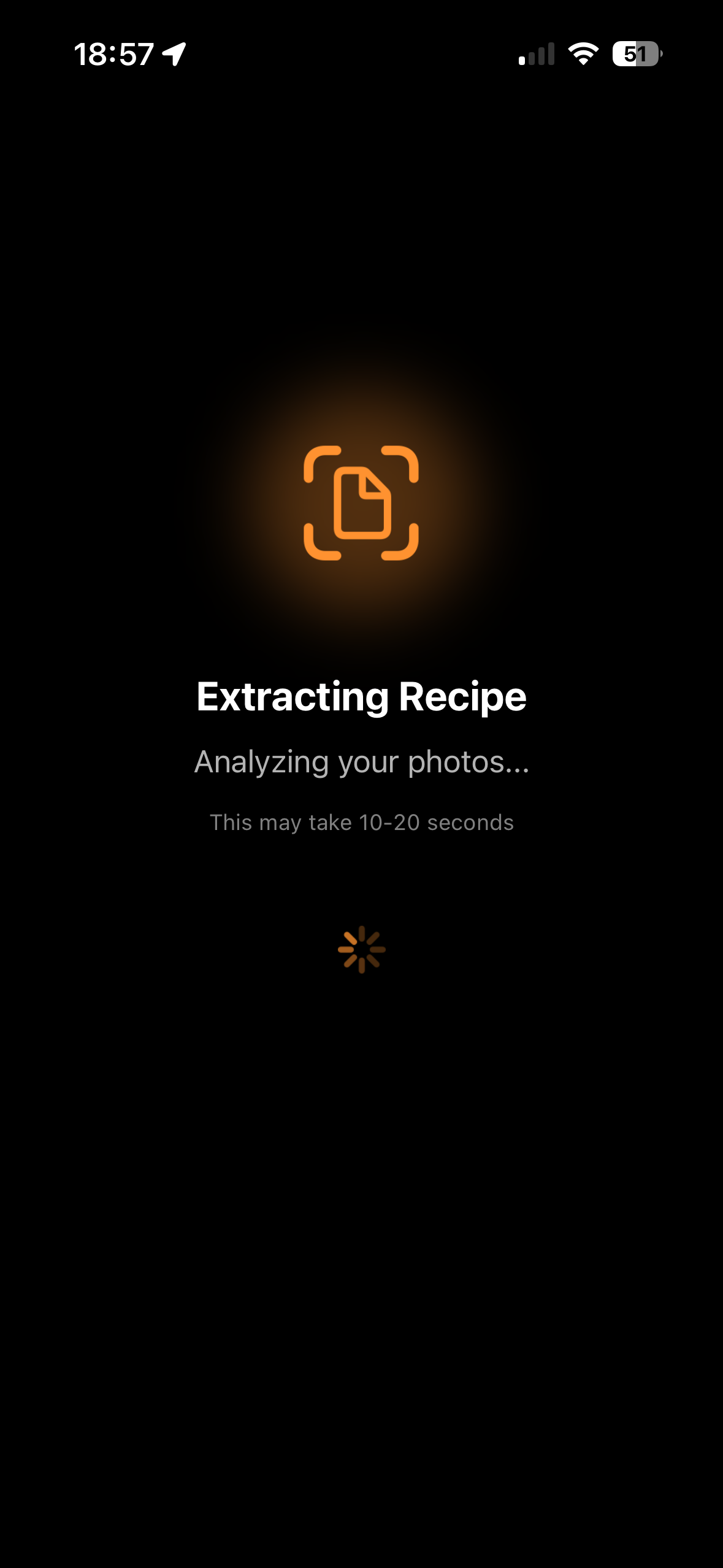 ChefTalk analyzes your photo and extracts the recipe details. This takes 10-20 seconds.